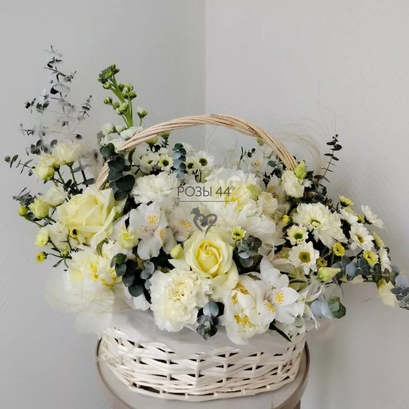 Корзина с кустовой пионовидной розой.