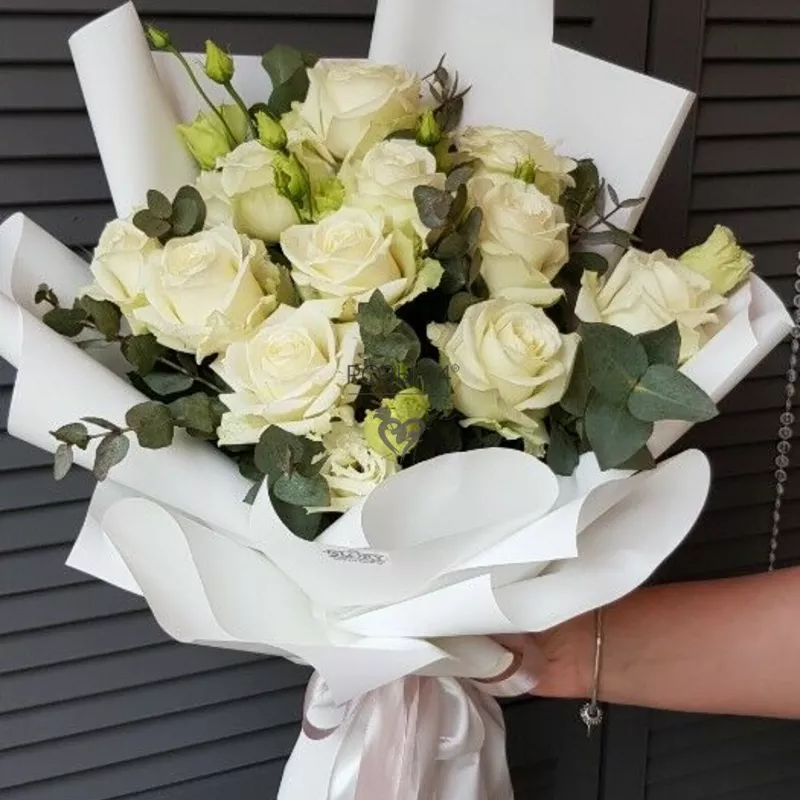 Праздничный букет из белых роз